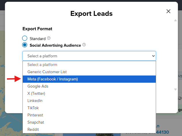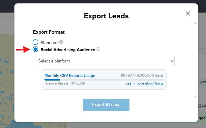 - Select "Social Advertising Audience" – Choose this export format from the options
