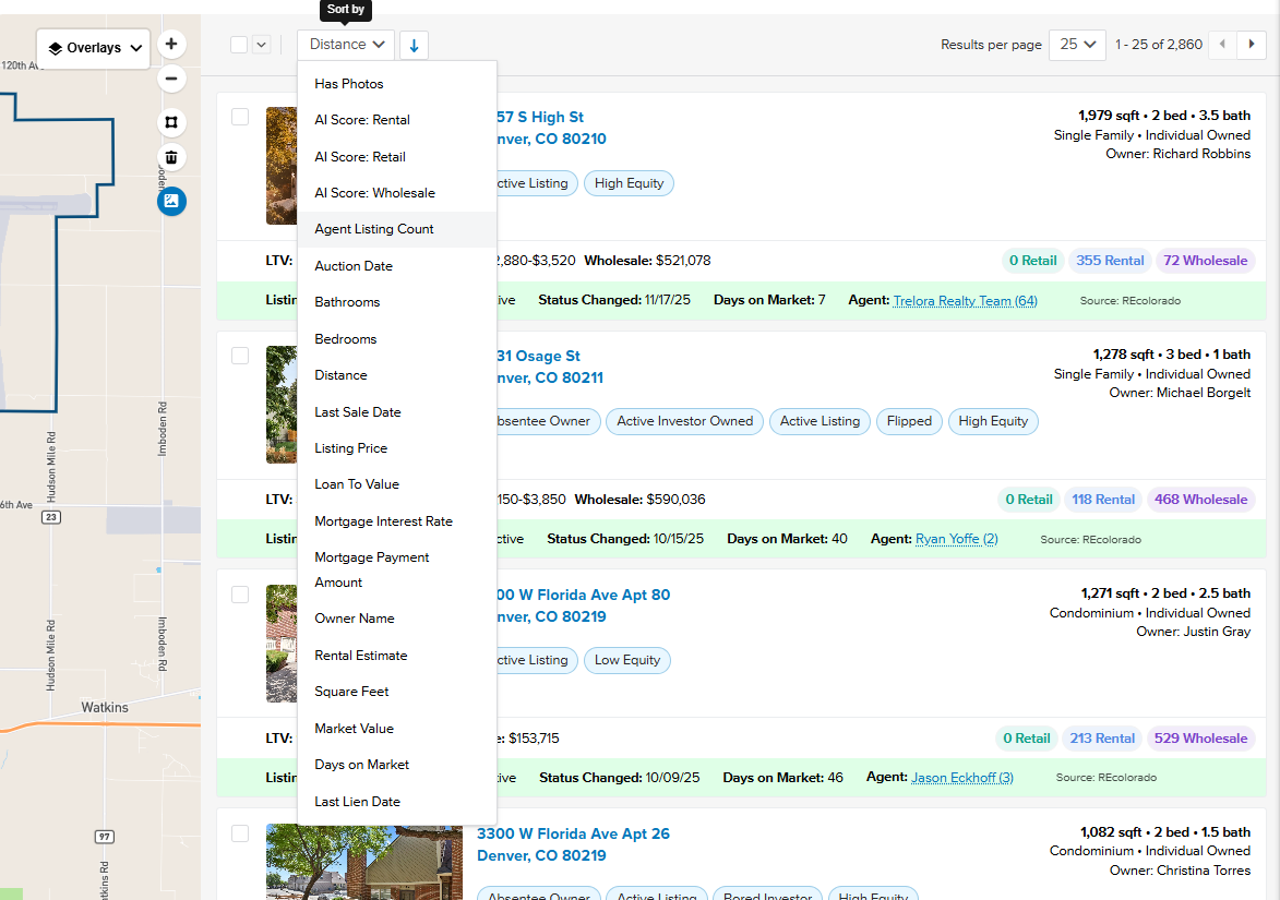 Finding High-Volume Agents: Sort by descending count to identify the most active listing agents in your target area—ideal for building strategic partnerships.
