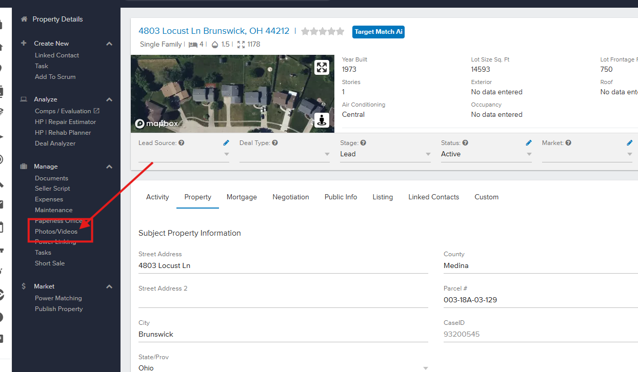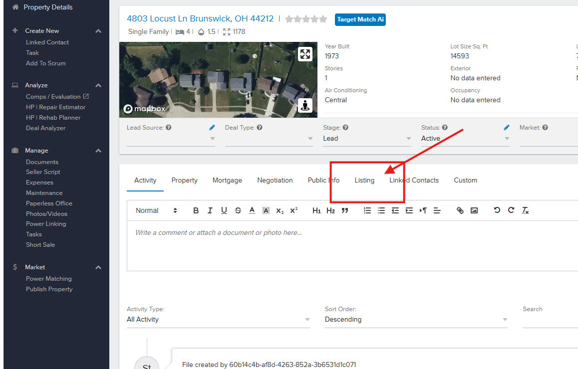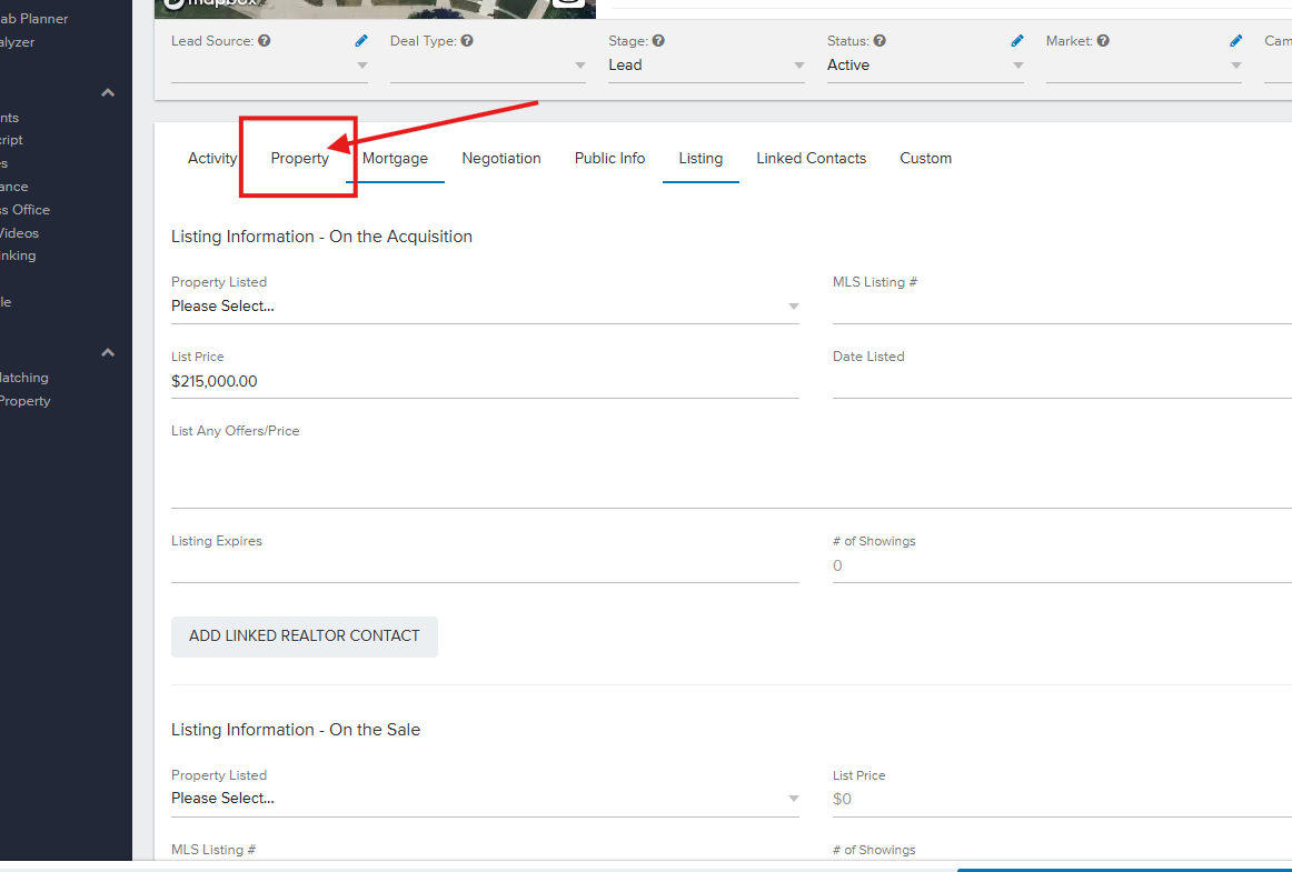 Open your property file and select the LISTING Tab